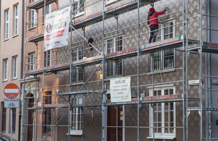 Elewacje kilkudziesięciu kamienic przy ul. Ogarnej, Warzywniczej i Szerokiej. Odbudowane w latach 50-tych po zniszczeniach wojennych. Renowacja dekoracji malarskich nawiązuje do sztuki Op-Art z lat 60-tych w której częściowo były wówczas realizowane